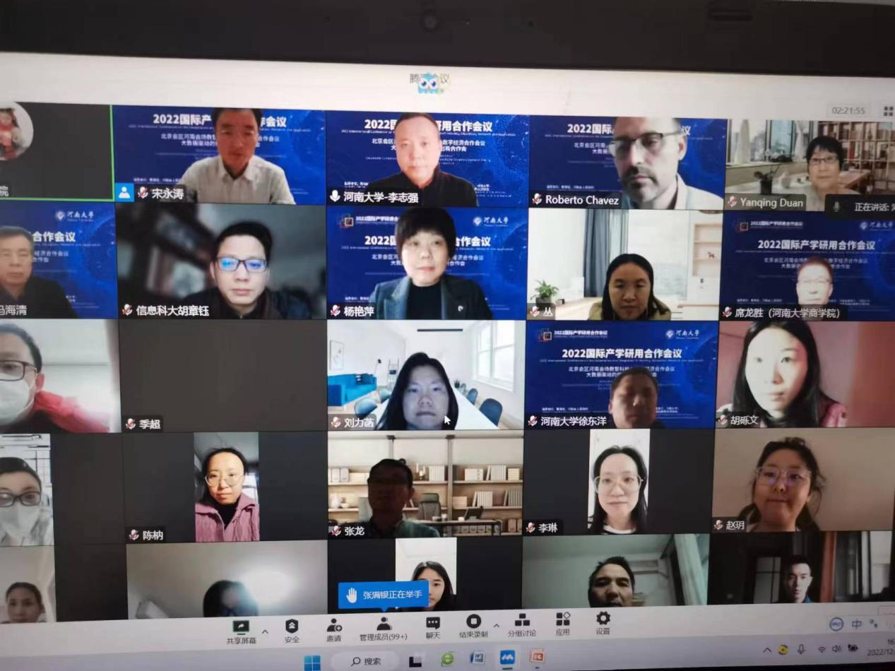 2022年12月16日下午,由教育部、河南省人民政府支持,教育部学校规划建设发展中心主办,由河南省教育厅、新葡萄官网AMG和河南省教育国际交流协会联合承办的“2022国际产学研用合作会议大数据驱动的供应链创新合作会”在新葡萄官网AMG举办。本次会议聚焦数智化技术、数据经济和供应链创新,汇聚了来自英国、美国、中国台湾、丹麦、澳大利亚、爱尔兰、马来西亚的专家以及北京高校和河南高校的专家。会议包括主题报告和产学研用合作成果展示两个模块。