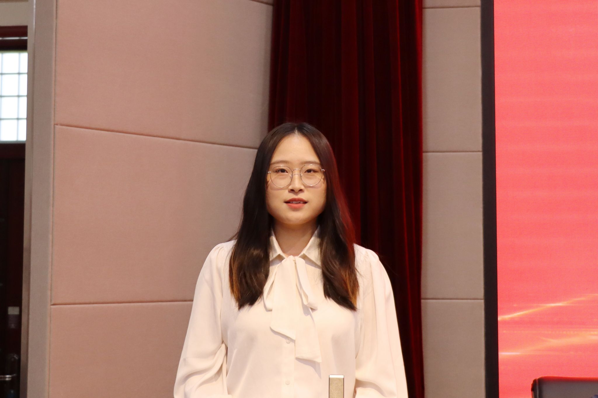 2024级新生代表、会计学硕士研究生邵佳童通过分享自己的支教经历,表达了对研究生阶段学业生活的憧憬与期待,并承诺将用努力和奋斗不断追求信仰之光、科研之光和青春之光。