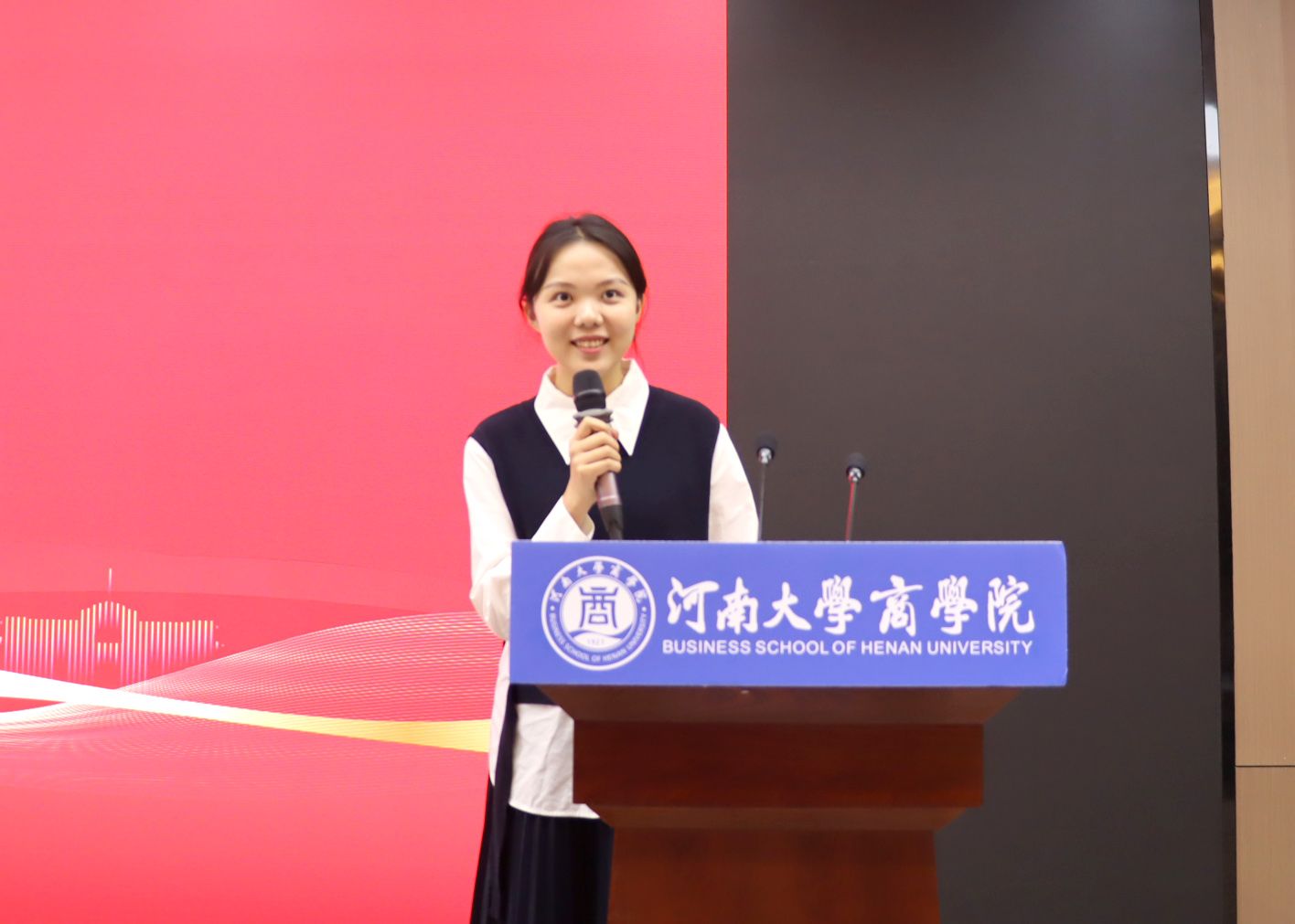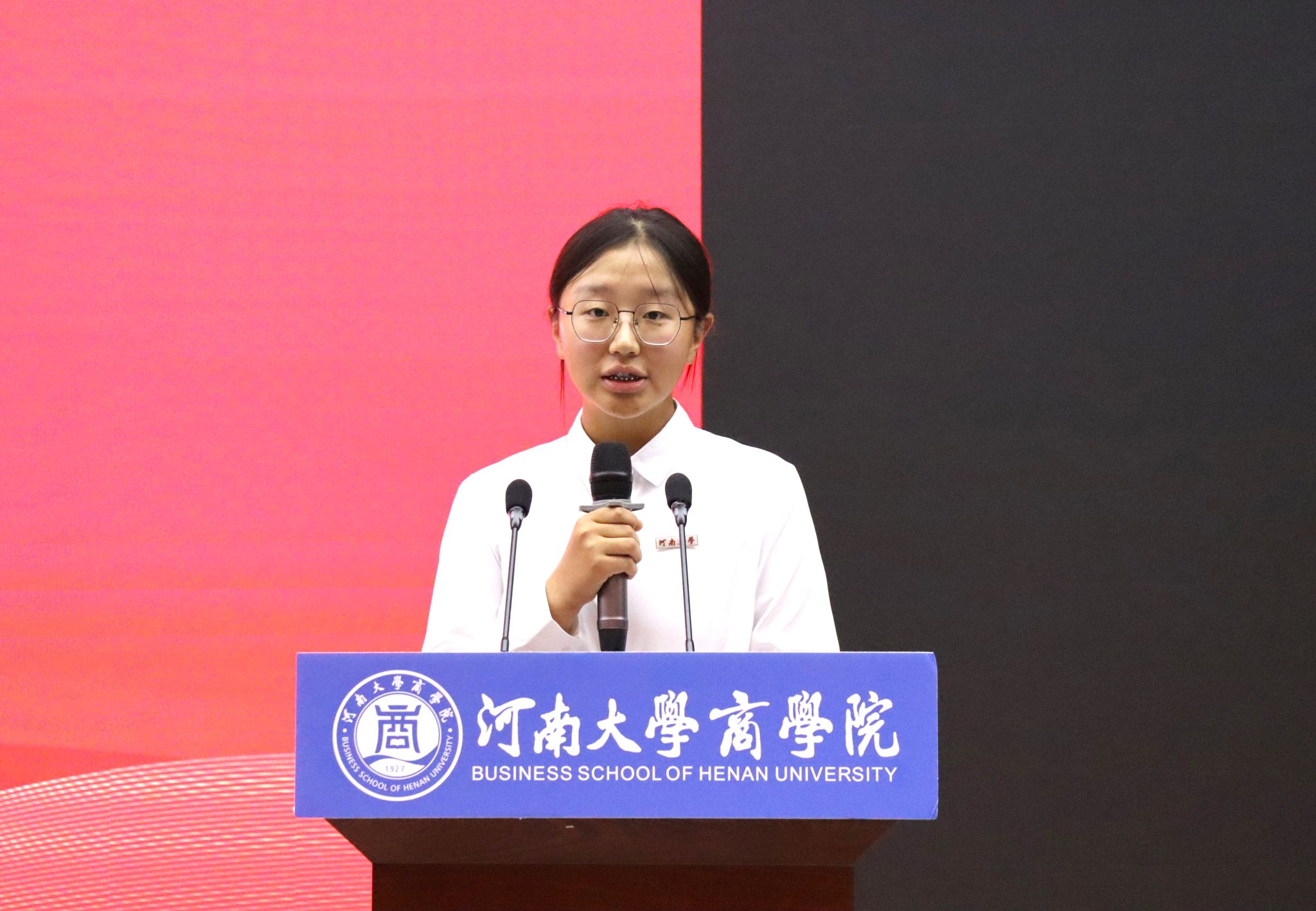 典礼在庄严雄壮的国歌声中拉开帷幕。学院执行院长席龙胜致辞。他向全体新生表示热烈的欢迎,并深情阐述了大学教育的深刻内涵与商科在新时代的使命。他指出,大学是培养完整的人的旅程,商科教育重在创新、管理、领导力与责任。他对新生提出四点期望:志存高远,涵养家国情怀;潜心向学,筑牢专业根基;知行合一,锤炼实践能力;修身立德,追求全面发展。他勉励新生将个人理想融入国家发展大局,践行“明德弘道,商善天下”的院训精神,在百年河大的沃土上成长为担当民族复兴大任的时代新人。