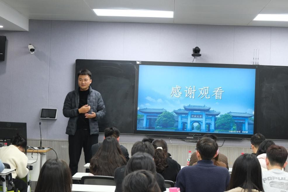 宗旭同学聚焦金融领域,在《“金”英之路——银行业求职全揭秘》中,深入分析了银行业各类岗位的需求,并具体介绍了网申流程与笔试备考技巧。孟祥臻同学则以《以赛促学——国家级竞赛指南》为题,重点讲解了“企业竞争模拟大赛”、“中国研究生企业管理创新大赛”等高水平赛事的参赛流程、团队组建与备赛经验,鼓励新生以赛促学,提升实践能力。徐家豪同学在《证书为翼——职业发展加分项》中,梳理了MBA期间可考取的高价值职业资格证书,如CPA、CFA等,并就其难度、时间投入与职业发展的关联度进行了分析,为同学们的证书规划提供了清晰指引。