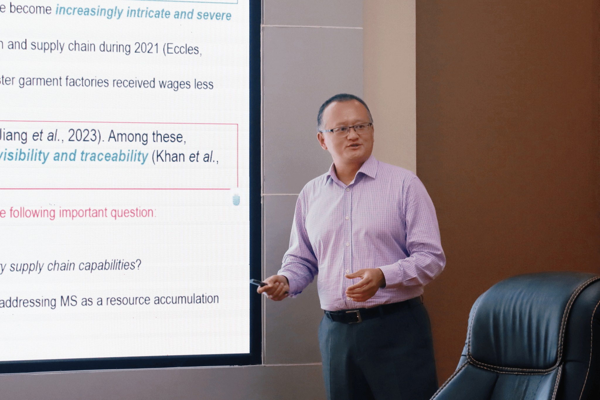 本次学术讲座聚焦于一个核心议题:在充满不确定性的时代,企业如何通过数字化转型来构建兼具高效与环境可持续性的负责任供应链。他深入剖析了当前数字化变革的现状与挑战,并通过对两个实证研究的详细解读,揭示了成功实现“数字化供应链可持续性转型”的关键所在。报告的第一篇论文研究了组织如何学习应用区块链技术以支持应对现代奴役问题的供应链能力建设;第二篇论文则聚焦于培训供给在数字化转型与环境可持续性关系中所起到的调节作用。