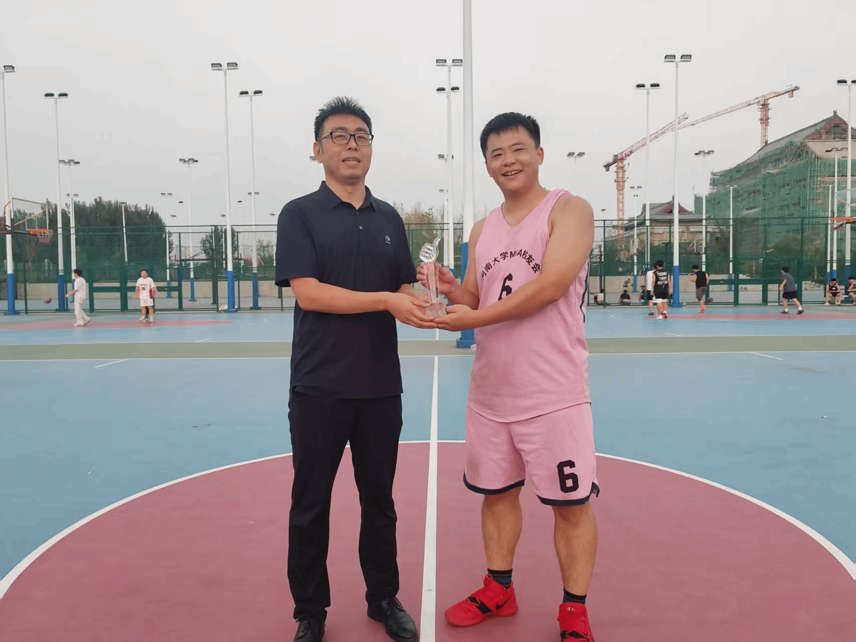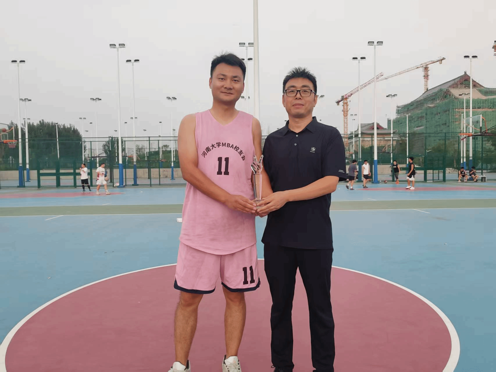 随后进入颁奖环节,2022 级 MBA 校友刘佩主持,新葡萄官网AMG MBA 校友会副会长王延胜颁奖。“在校生队” 获定制冠军奖杯及纪念品,“毕业生队” 获亚军奖杯及纪念品;24 级沈思远凭三分能力与得分表现,获 “最有价值球员(MVP)” 及奖杯。王延胜表示,赛事展现了 MBA 学子的拼搏与团队精神,未来校友会将建更多互动平台,助力校友深化情谊、促进职业发展。